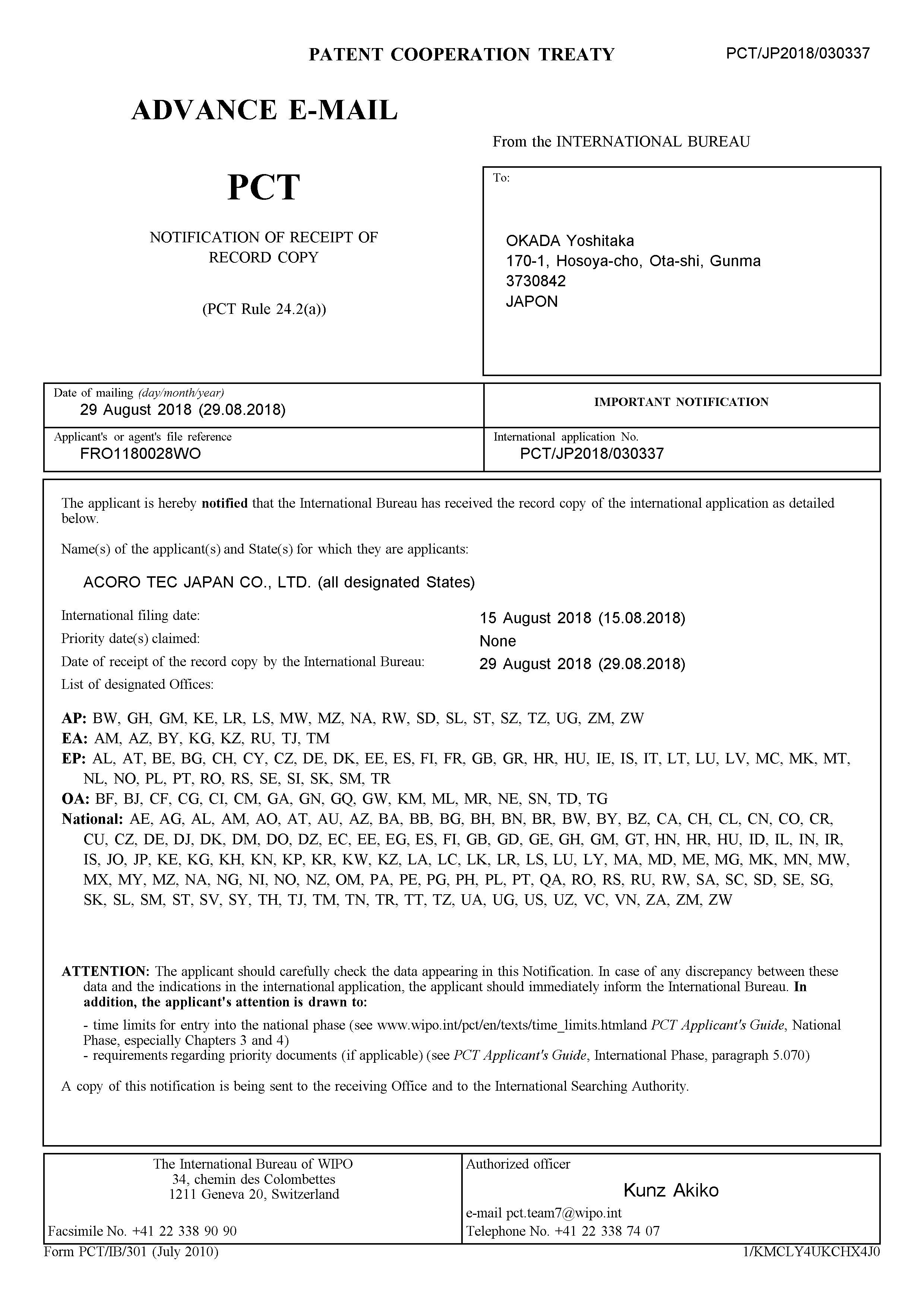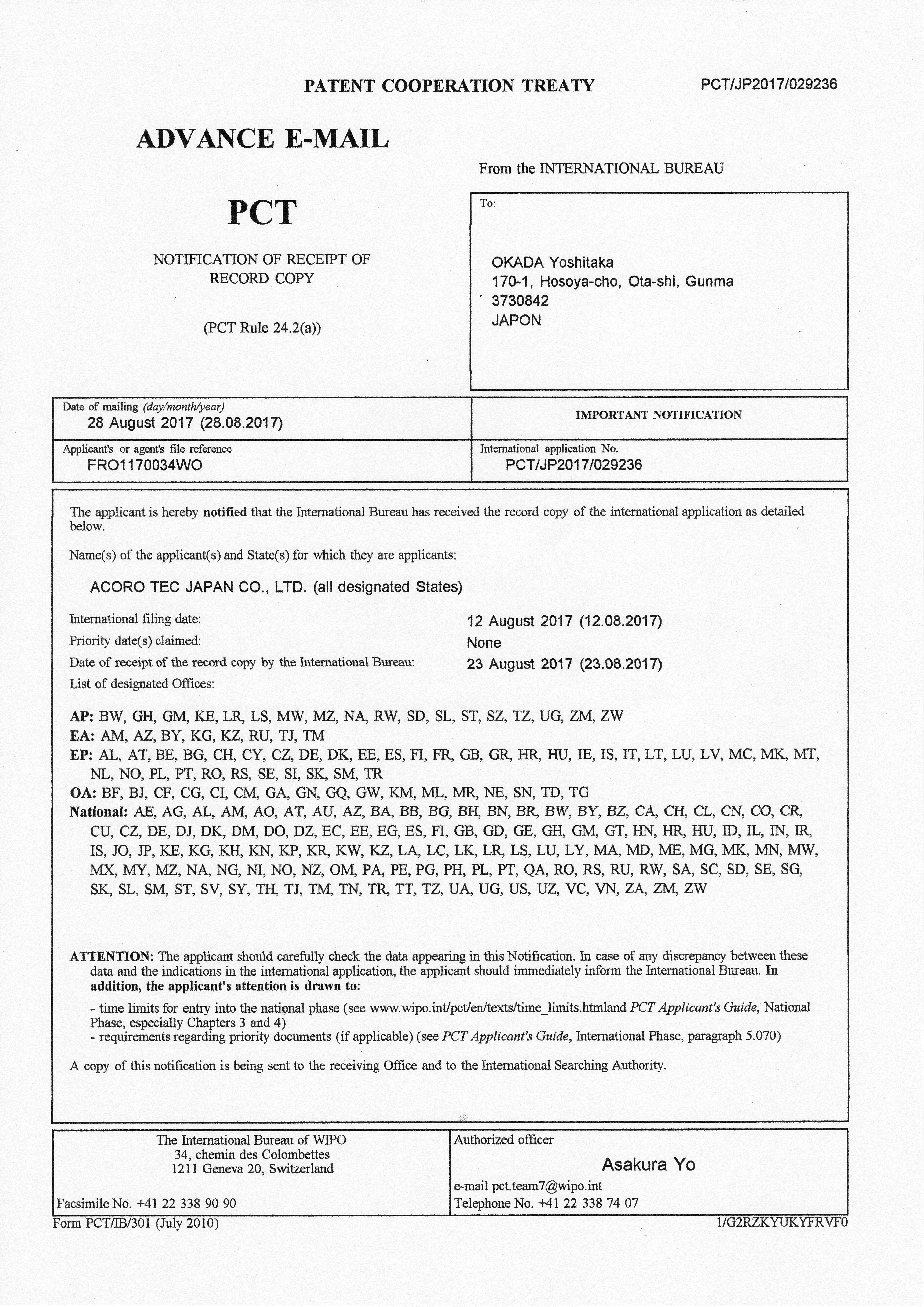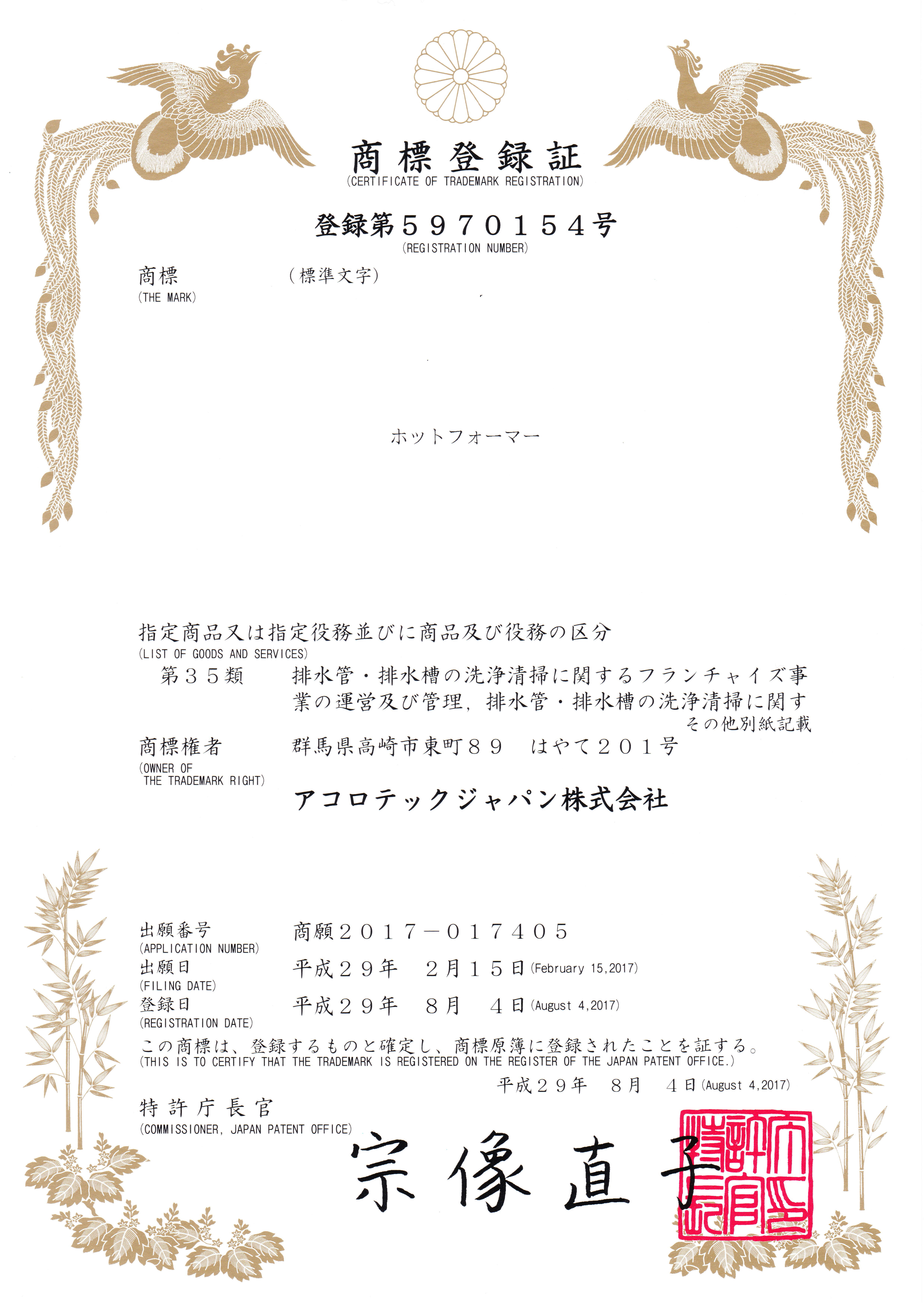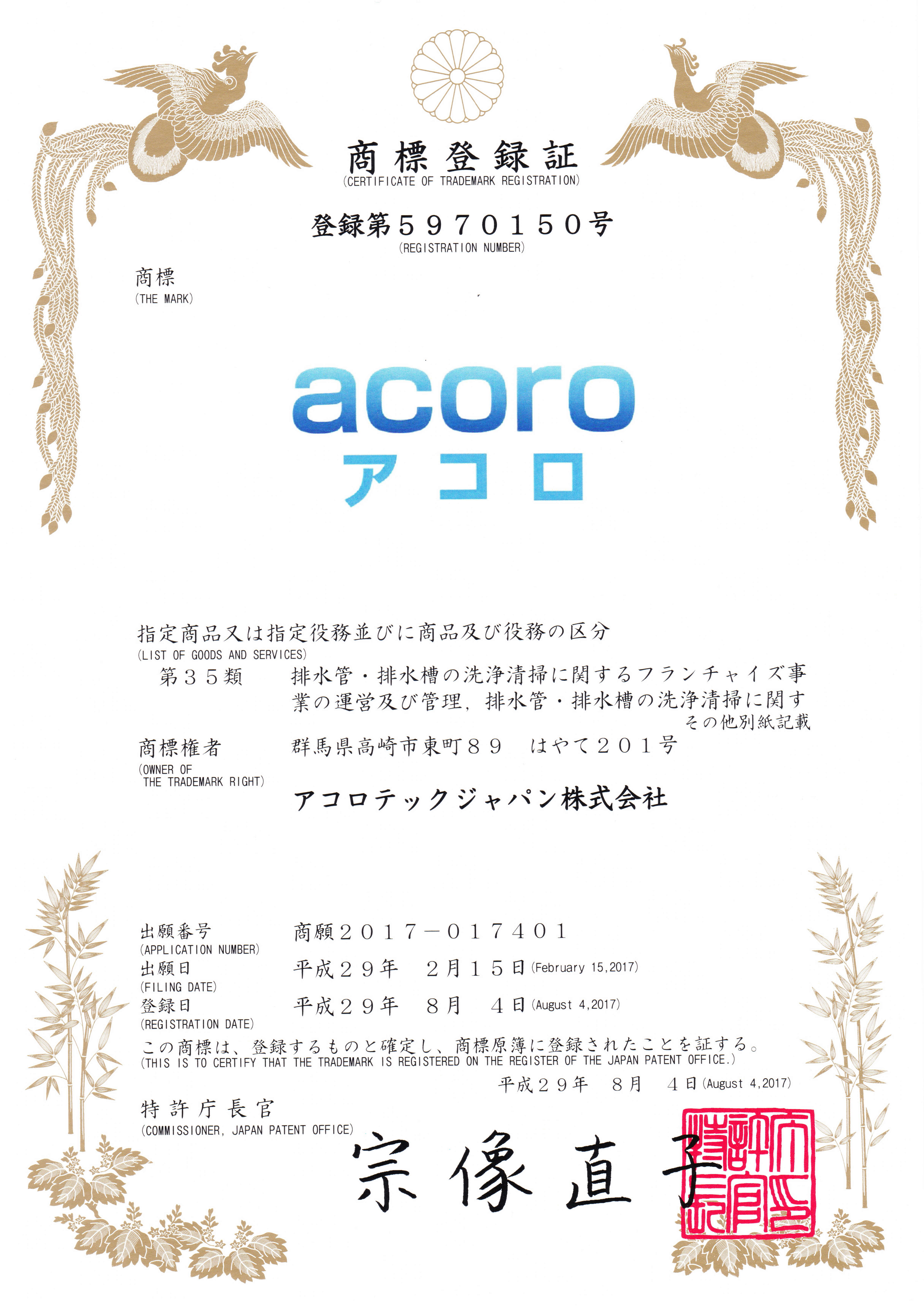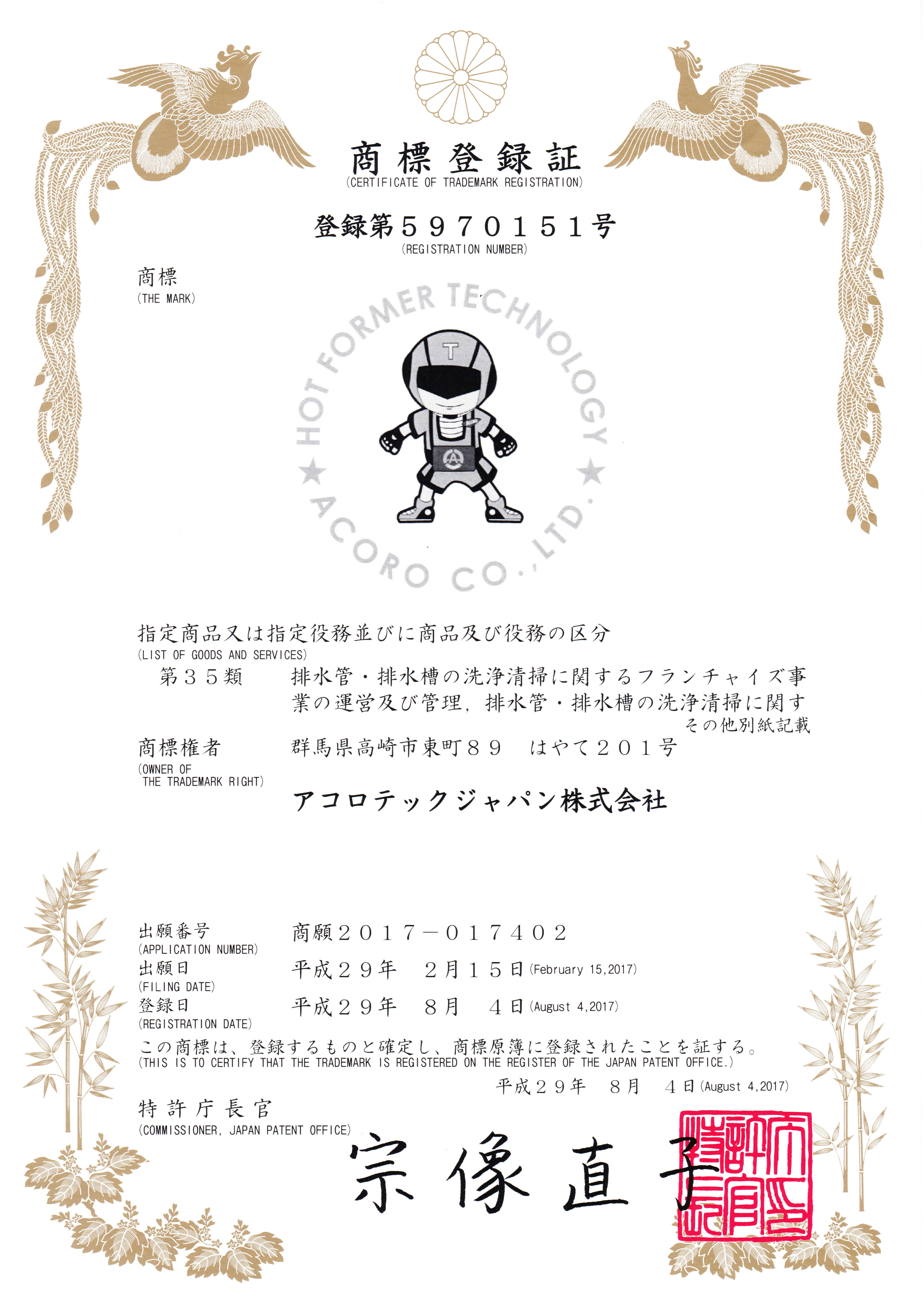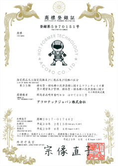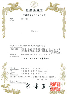 環境アコロ株式会社ではアコロテックジャパン株式会社より国際特許、国内特許、商標登録等の使用権利を数多く取得をしています。
