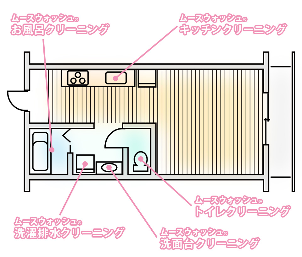 汚れ、カビ、害虫、悪臭を消毒除去します。